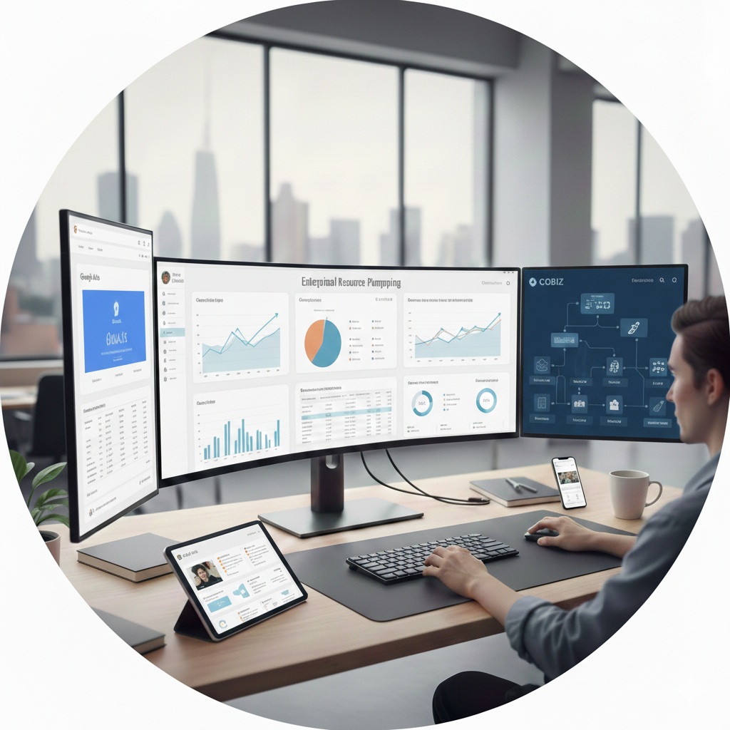 Diseñamos el núcleo de su negocio. Auditamos sus procesos actuales para implementar ecosistemas ERP y CRM que eliminan la fricción operativa. Nuestra capacidad técnica nos permite crear flujos de trabajo automatizados que aseguran que su equipo se enfoque en lo que realmente importa: crecer.